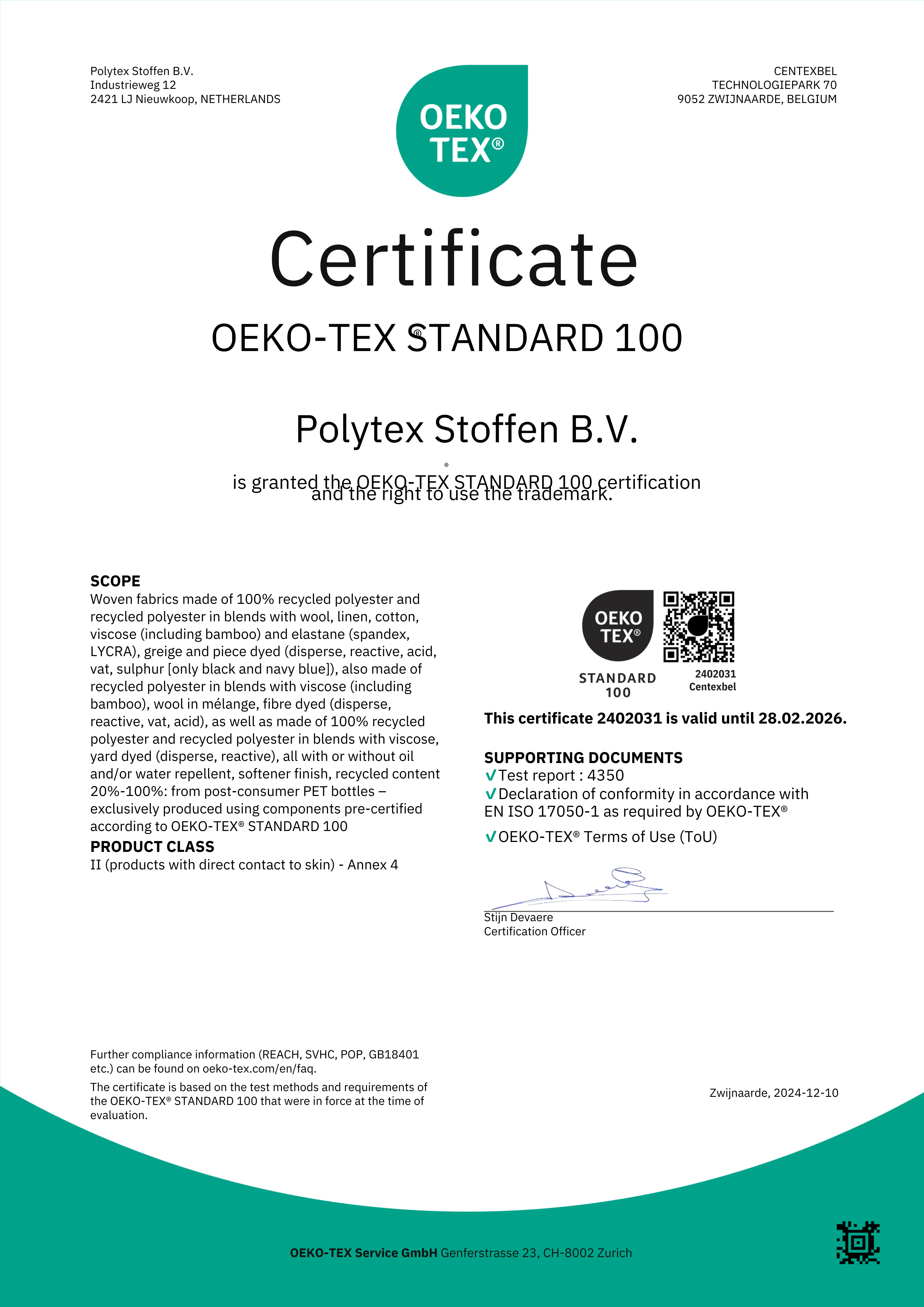 Oeko-Tex Standaard 100 PS Fashion Fabrics