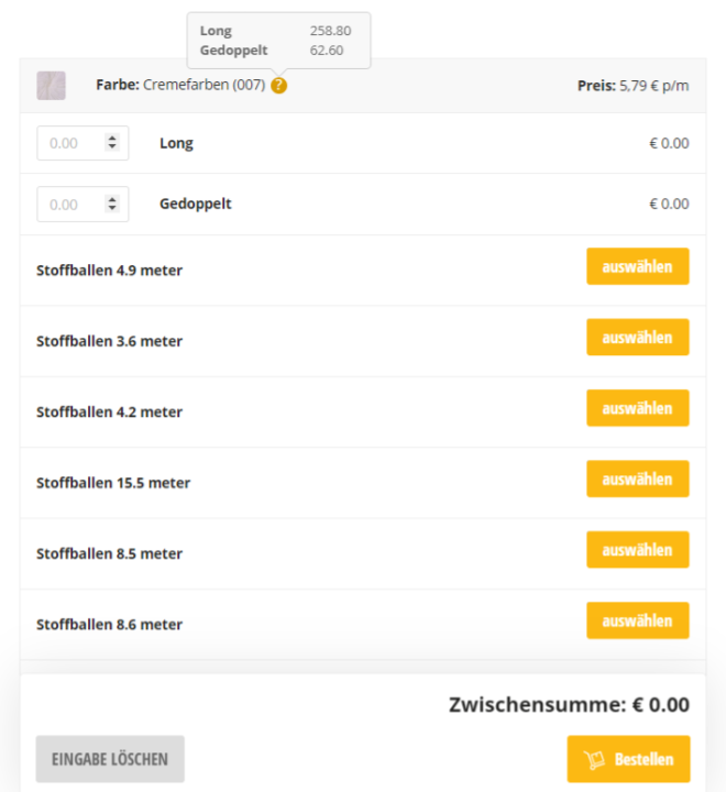 Im Webshop sehen Sie ob der Stoff vorrätig ist.