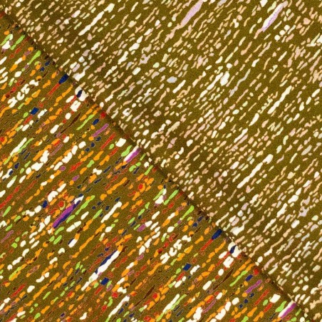 Dieser Webstoff aus 100 % Viskose ist im Digitaldruck mit einem farbenfrohen „Entladungs“-Muster bedruckt, das einen auffälligen und künstlerischen Look erzeugt. Mit einer Breite von 140-145 cm und einem leichten Gewicht von 115-120 Gramm pro Quadratmeter ist dieser Stoff perfekt für die Gestaltung eleganter und bequemer Kleidungsstücke wie Blusen, Kleider, Röcke und Schals.