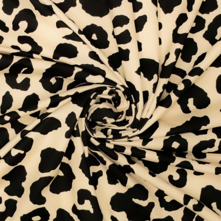 The knitted sports fabric combines a striking leopard pattern with an elastic and supportive structure. Made of 78% polyester and 22% elastane, this fabric offers excellent stretch and shape retention, making it ideal for activewear such as leggings, sports bras, and tops. With a weight of 250 gr/m2, it is durable and provides comfort and flexibility during intense activities. This fabric is certified according to OEKO-TEX Standard 100, meaning it is free from harmful substances and safe for the skin.