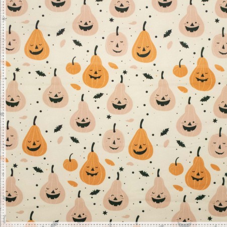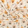 This knitted jersey fabric with a playful Halloween design combines comfort and stretch for an optimal fit. Thanks to its cotton and elastane composition, the fabric feels soft, moves smoothly, and retains its shape well. With a width of 150 cm and a weight of 200 g/m², this fabric is perfect for T-shirts, pajamas, leggings, and other comfortable garments. Certified according to OEKO-TEX Standard 100, ensuring it is safe for the skin and free from harmful substances.