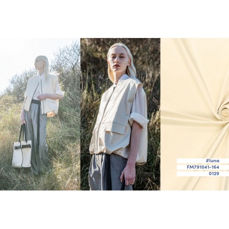 This woven satin fabric with a brushed finish combines comfort with a subtle sheen. The blend of cotton, polyester, and elastane provides a soft feel and slight stretch, making it ideal for blouses, dresses, skirts, and stylish trousers. With a weight of 225 g/m² and a width of 145 cm, this fabric is durable, supple, and pleasant to wear. Certified according to OEKO-TEX Standard 100.