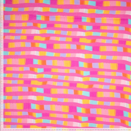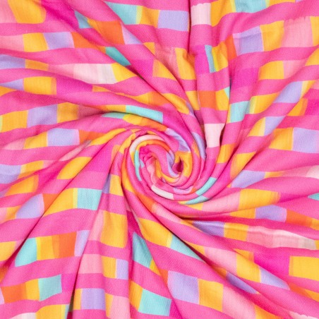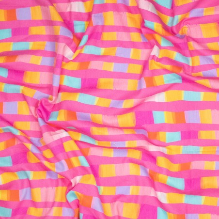 Add a modern and playful touch to your creations with this denim-like twill fabric featuring colorful abstract blocks, designed by Karina in collaboration with Karina+Kind x PS Fashion Fabrics. The cheerful print with geometric shapes in various colors makes every project stand out. Perfect for trousers, jackets, skirts, bags, and creative fashion projects.